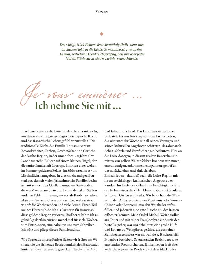 Schweizer Buchhandel 2011: Rezepte aus der französischen Landküche, verbunden mit Exkursen und Anekdoten zu Küche, Land und Leuten. Grafisch angereichert, wie man das auch schon von ihren früheren Büchern kennt, mit Fundstücken aus dem Rousseau’schen Familienfundus. 40 000 Mal haben sich ihre Bücher bereits verkauft…
